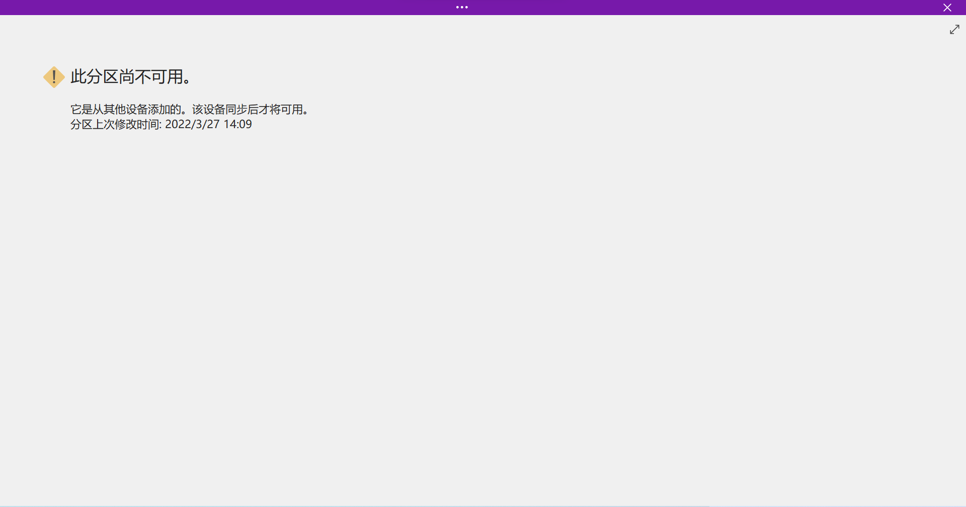 OneNote 报错:此分区尚不可用。它是从其他设备添加的。该设备同步后才将可用