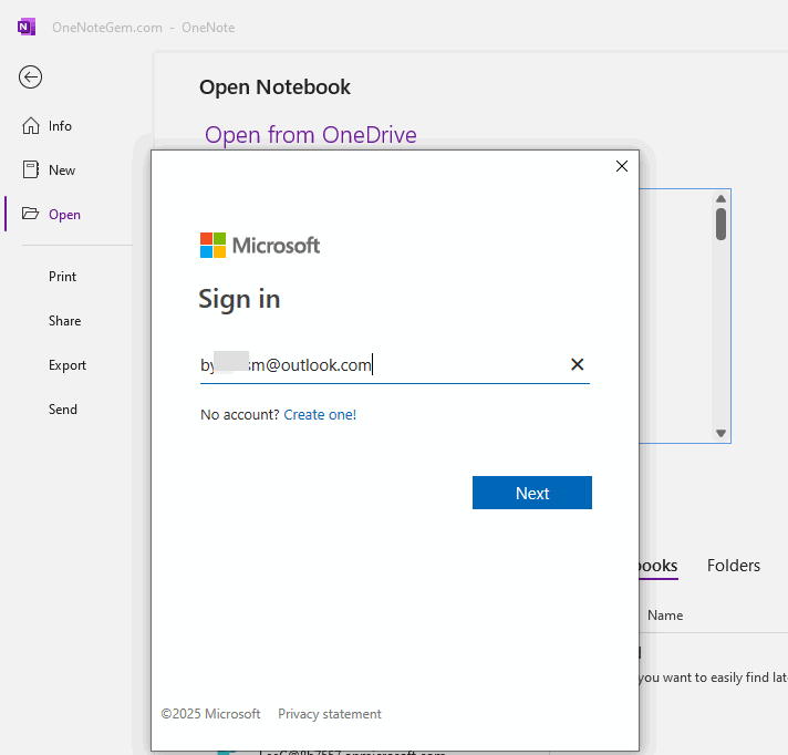 在 Office OneNote 中的文件 -》打开 -》登录账户时。可以弹出登录窗口,可以输入微软账户。