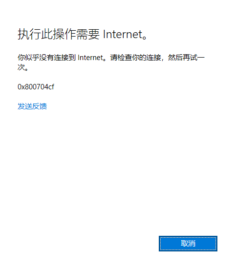 出现 0x800704cf 错误,应该是所有的微软做的软件都连接不了网。可以试试以下方法: